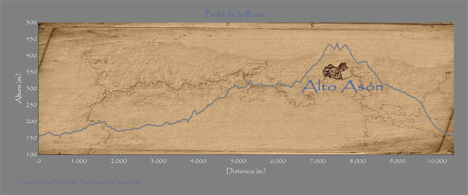 Existe una área recreativa, en donde se puede observar un grupo numero de chopos, además de un nogal (Juglans regia), sauces incluyendo sauce llorón (Salix babylonica), una haya (Fagus sylvatica), saúcos (Sambucus nigra) y plátanos (Platanus hispanica). Una vez se llega a Asón, la ruta cruza el puente sobre el río Asón y gira hacia la izquierda, en dirección al pueblo de Valdeasón, en los bordes de la carretera se pueden observar ejemplares de sauces y avellanos junto a especies en ocasiones de clima mediterraneo como el labiérnago (Phyllirea latifolia), el aladierno (Rhamnus alaternus), o el laurel (Laurus nobilis). Una vez en la plaza de Socueva, el camino prosigue por un sendero en ocasiones angosto hacia el pueblo de Socueva, las especies que podemos encontrar son robles, espinos albares, endrinos, higueras (Ficus carica), castaños, fresnos y sauces, junto con algunas rosáceas del genero Rubus o urticáceas como Urtica sp y pteridófitos (helechos).